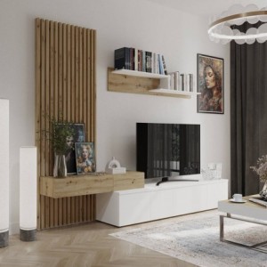 ESTANTERÍA COMPLETA CON PANEL DECORATIVO – DISEÑO MODERNO Y FUNCIONALLA ESTANTERÍA COMPLETA WENDY DESTACA POR SU ESTILO CONTEMPORÁNEO Y SU GRAN FUNCIONALIDAD. EL PANEL DECORATIVO DE MADERA APORTA SOFISTICACIÓN AL ESPACIO, MIENTRAS QUE LA BALDA SUPERIOR ES PERFECTA PARA EXPONER LIBROS U OBJETOS DECORATIVOS. LA ESTANTERÍA INCLUYE UN AMPLIO MUEBLE INFERIOR CON PUERTAS DE ALMACENAJE, GARANTIZANDO ORGANIZACIÓN Y ELEGANCIA EN EL SALÓN.• DISEÑO MODERNO Y FUNCIONAL.• PANEL DECORATIVO DE MADERA QUE APORTA UN TOQUE DE SOFISTICACIÓN.• BALDA SUPERIOR PARA LIBROS Y OBJETOS DECORATIVOS.• MUEBLE INFERIOR CON ESPACIO DE ALMACENAJE CERRADO.• DIMENSIONES: ANCHURA 225CM | ALTURA 210CM | FONDO 38CM.UNA SOLUCIÓN COMPLETA PARA QUIENES BUSCAN ESTILO, ORGANIZACIÓN Y CONFORT EN EL SALÓN.