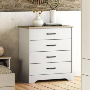 • ESTRUCTURA EN MADERA LAMINADA DE ALTA CALIDAD.• 4 CAJONES.• COLOR: OAK/BLANCO.• ACABADO MATE.