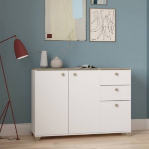 APARADOR IZZY (3 PUERTAS + 2 CAJONES) – ¡FUNCIONALIDAD Y DISEÑO MODERNO PARA SU HOGAR!EL APARADOR IZZY HA SIDO DISEÑADO PARA QUIENES BUSCAN UN MUEBLE VERSÁTIL, ELEGANTE Y PRÁCTICO PARA COMPLETAR LA DECORACIÓN. CON UN ACABADO EN BLANCO MATE Y DETALLES EN ROBLE KRONBERG, ESTA PIEZA SE ADAPTA A DIFERENTES ESTILOS DE INTERIOR, APORTANDO ORGANIZACIÓN Y SOFISTICACIÓN AL MISMO TIEMPO.CARACTERÍSTICAS PRINCIPALES:• ESTRUCTURA EN BLANCO MATE CON DETALLES EN ROBLE KRONBERG – COMBINACIÓN ARMONIOSA Y CONTEMPORÁNEA.• 3 PUERTAS Y 2 CAJONES – IDEAL PARA GUARDAR OBJETOS, VAJILLA O ROPA DE FORMA DISCRETA.• INTERIOR CON 1 ESTANTE AJUSTABLE EN 3 NIVELES – MAYOR FLEXIBILIDAD DE ALMACENAMIENTO.• TIRADORES EN BARRA DE PLÁSTICO LACADO PLATEADO – DETALLE QUE APORTA UN TOQUE MODERNO.• DIMENSIONES: 120 x 85 x 42 CM.• PESO: 39 KG.¿POR QUÉ ELEGIR EL APARADOR IZZY?• OFRECE GRAN CAPACIDAD DE ALMACENAMIENTO SIN RENUNCIAR AL ESTILO.• DISEÑO CONTEMPORÁNEO QUE SE INTEGRA EN CUALQUIER ESTANCIA.• ESTRUCTURA ROBUSTA Y MATERIALES DE ALTA CALIDAD PARA MAYOR DURABILIDAD.¡EL APARADOR IZZY ES LA ELECCIÓN IDEAL PARA QUIENES DESEAN COMBINAR ELEGANCIA, FUNCIONALIDAD Y ORGANIZACIÓN EN UNA SOLA PIEZA DE MOBILIARIO!